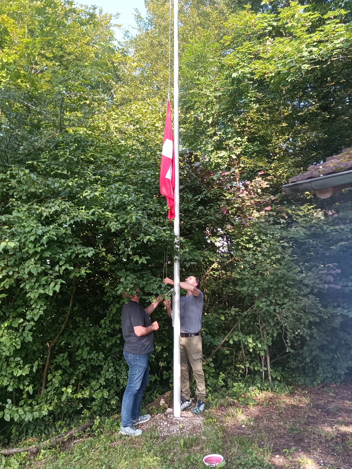 Der Verwaltung blieb nur noch, eine neue Fahne zu kaufen und diese aufzuziehen. Das geschah am 13. Juli anlässlich des Grillanlasses der Bürgerverwaltung.