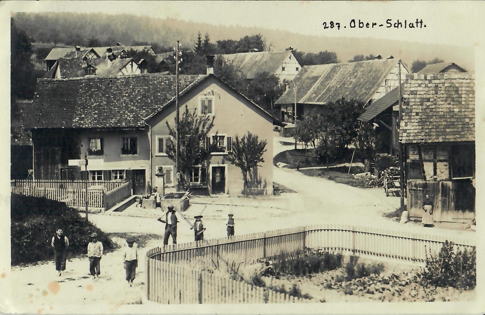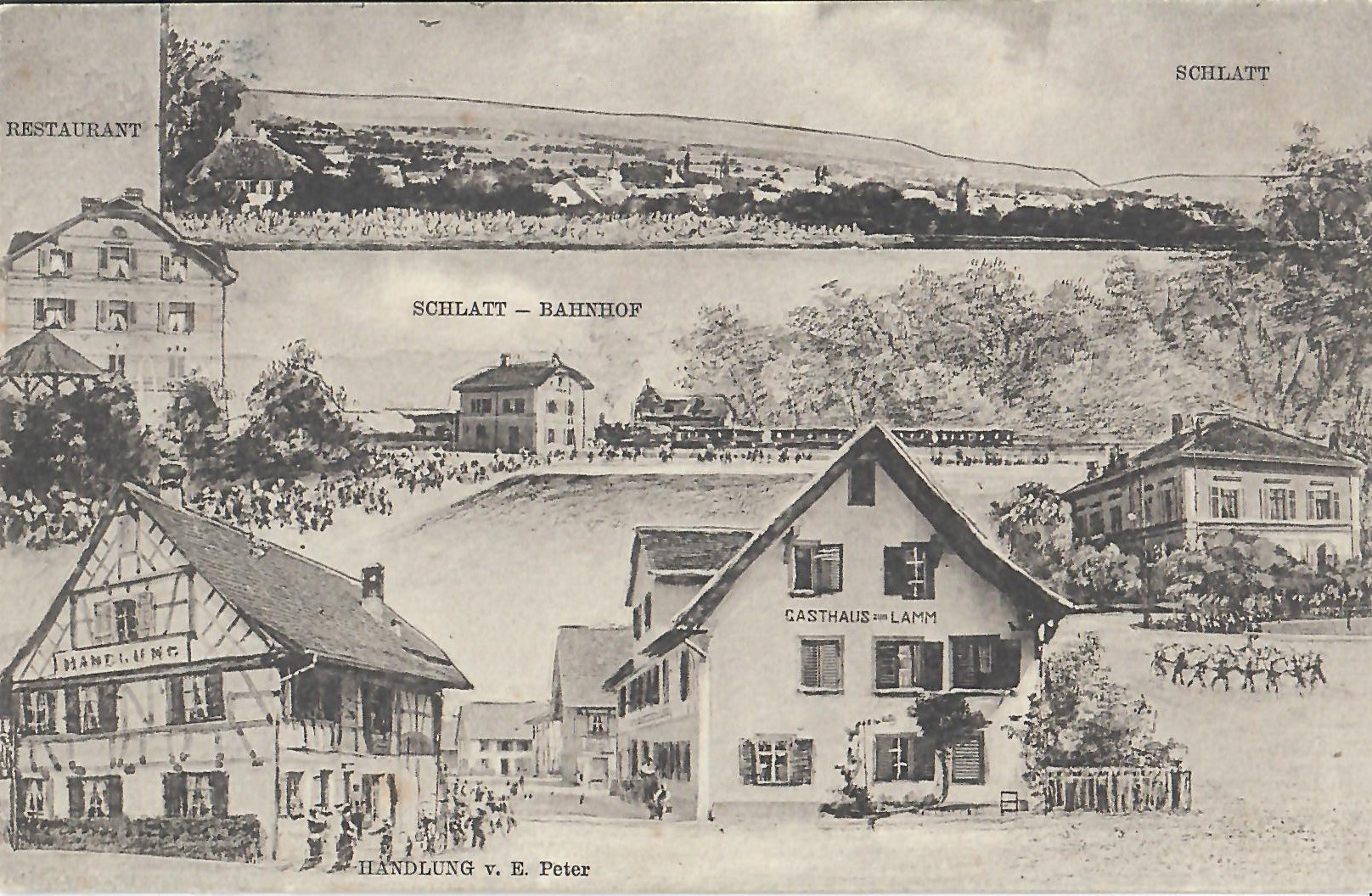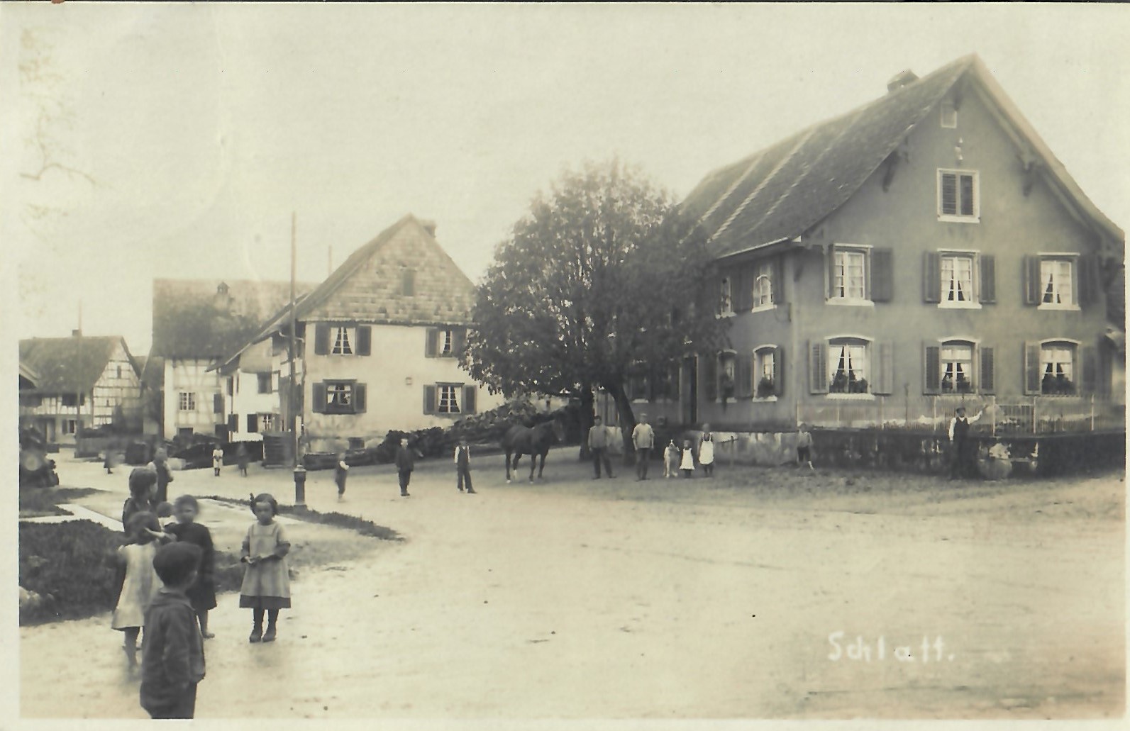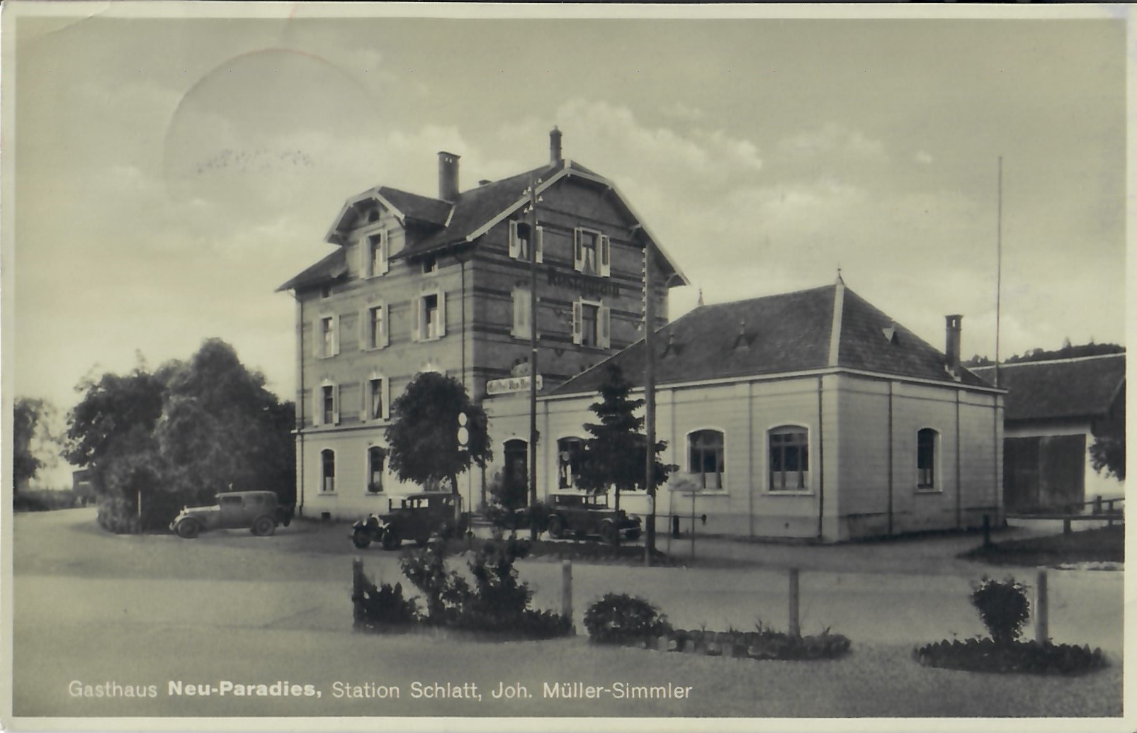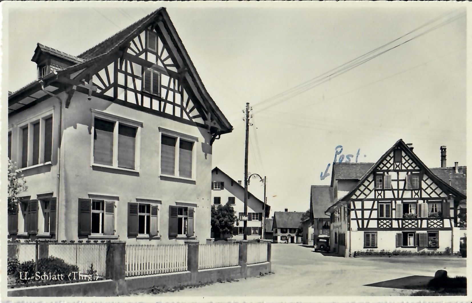 In diesem Kapitel sehen Sie historische Ansichtskarten mit Sujets aus dem Gemeindegebiet von Schlatt. Die Karten sind teilweise über 100 Jahre alt. Sie wurden in die ganze Welt verschickt. Den weitesten Weg hinter sich hat eine Karte, welche bis nach Pittsburg, USA, und wieder zurück fand. Ansichtskarten hatten früher die Funktion, welche heute SMS oder whatsapp Nachrichten übernehmen. Man schickt sich schnell eine Nachricht wie; "Hallo es geht mir gut", "Ich komme um 15.30 Uhr bei euch an" oder "Hier meine neue Adresse" und ähnliches. Bemerkenswert ist, dass innerhalb der Schweiz versendete Ansichtskarten schon vor mehr als 100 Jahren bereits nach einem Tag bei dem/der Empänger/in ankamen! Hier sehen Sie die Sammlung B. Möckli. Diese wird laufend erweitert und ergänzt.