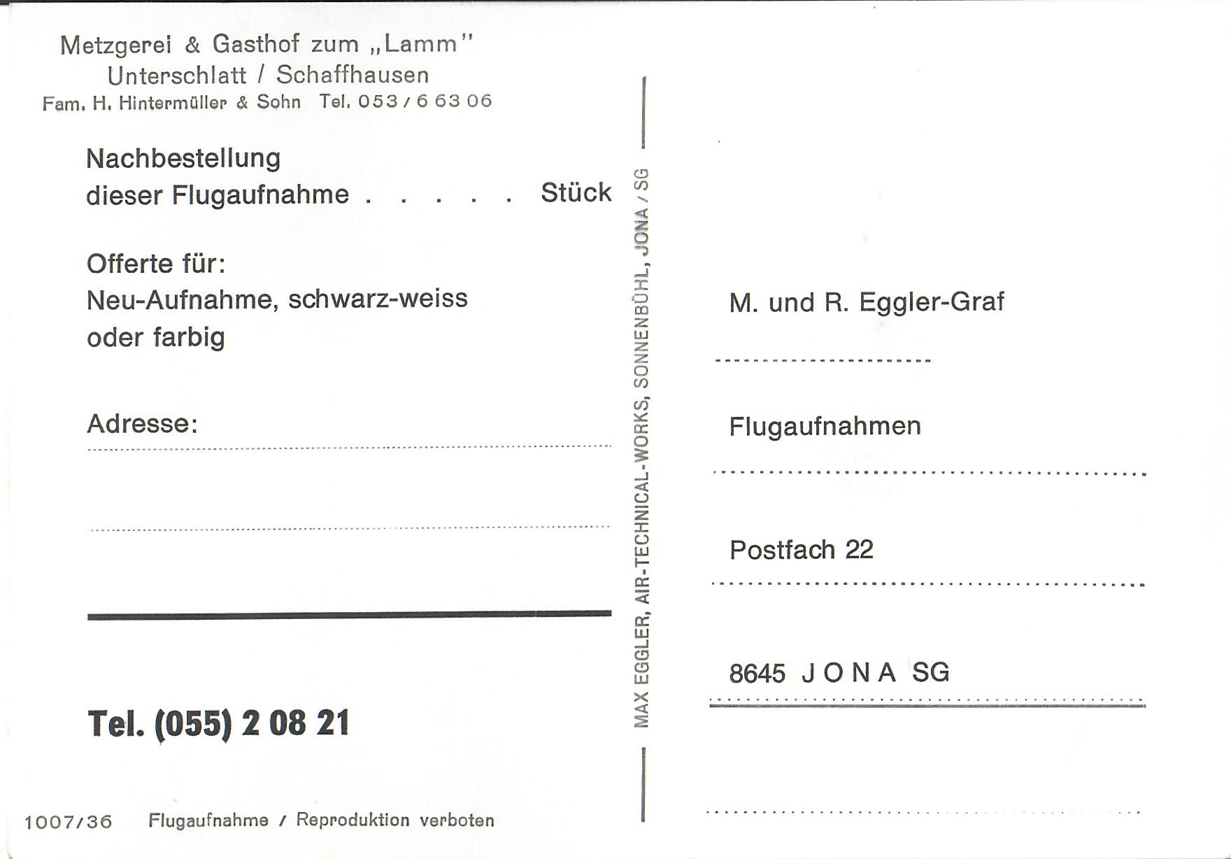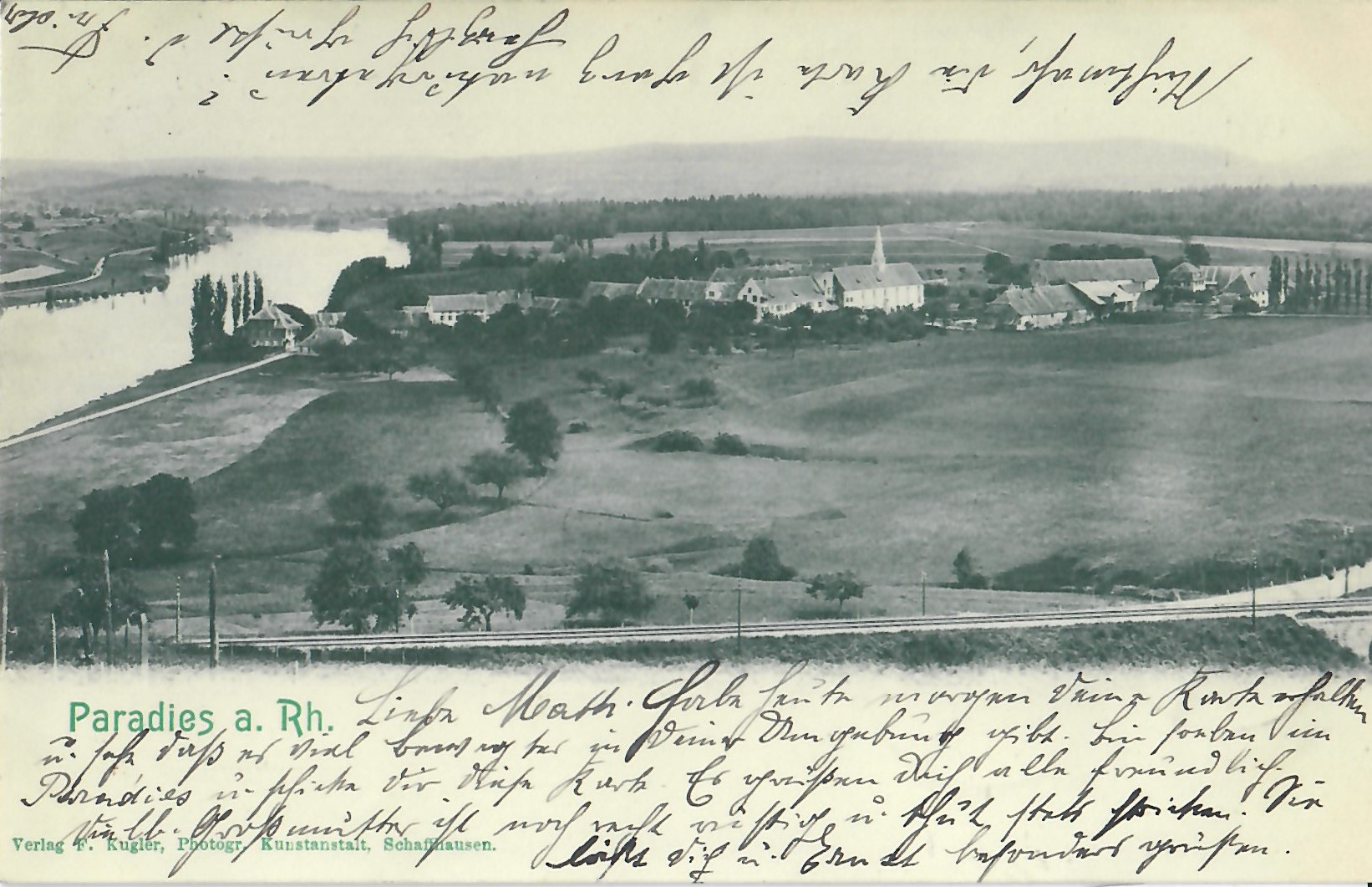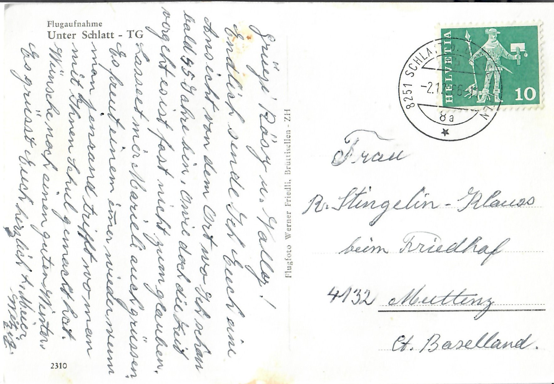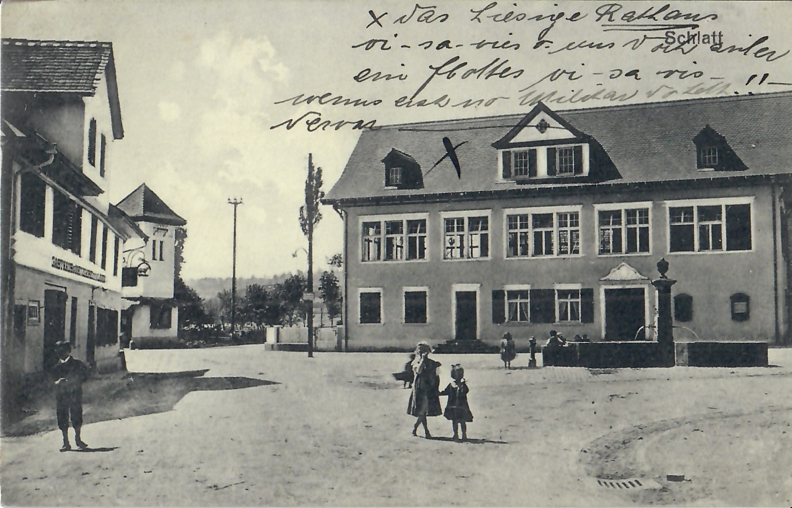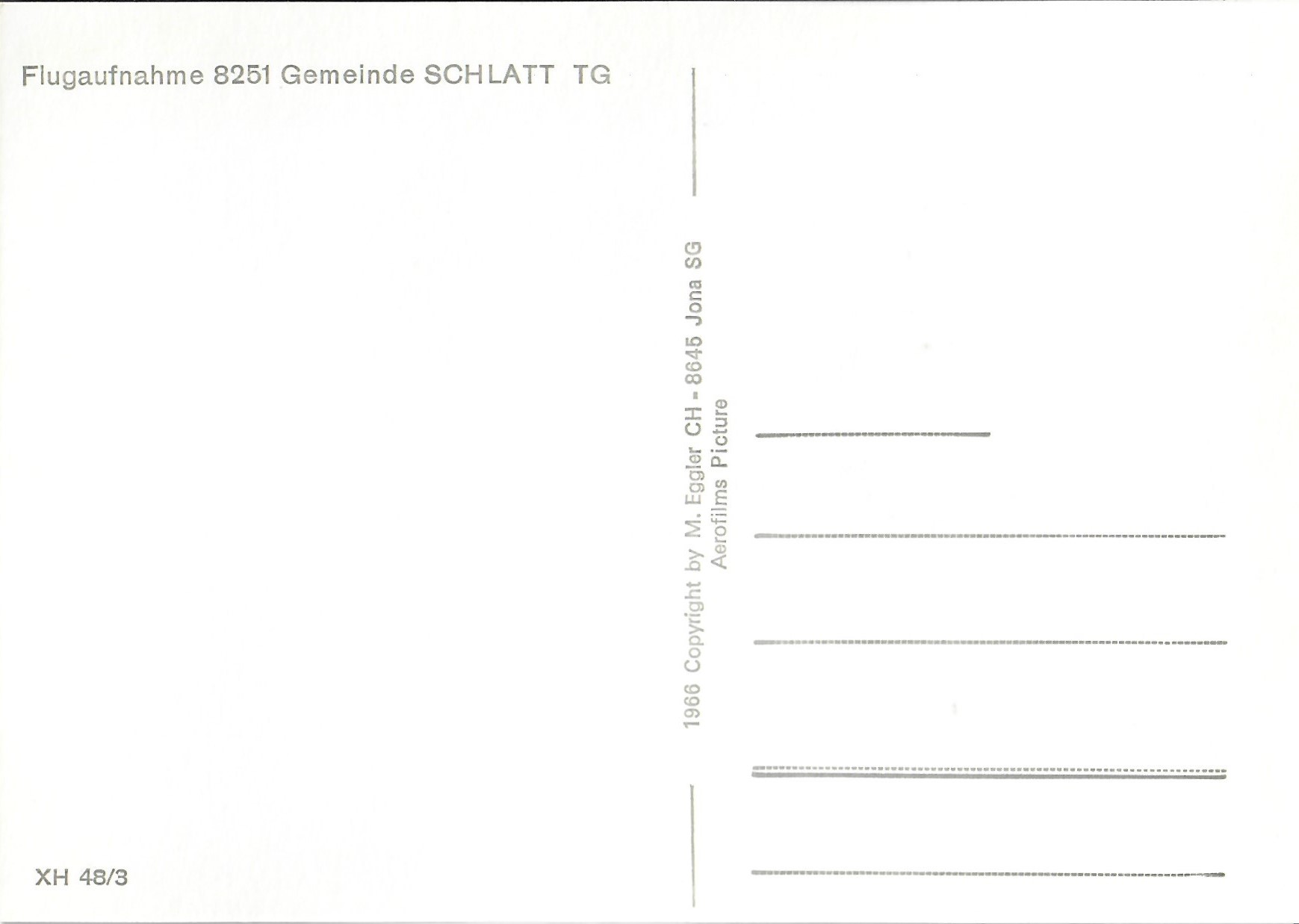 In diesem Kapitel sehen Sie historische Ansichtskarten mit Sujets aus dem Gemeindegebiet von Schlatt. Die Karten sind teilweise über 100 Jahre alt. Sie wurden in die ganze Welt verschickt. Den weitesten Weg hinter sich hat eine Karte, welche bis nach Pittsburg, USA, und wieder zurück fand. Ansichtskarten hatten früher die Funktion, welche heute SMS oder whatsapp Nachrichten übernehmen. Man schickt sich schnell eine Nachricht wie; "Hallo es geht mir gut", "Ich komme um 15.30 Uhr bei euch an" oder "Hier meine neue Adresse" und ähnliches. Bemerkenswert ist, dass innerhalb der Schweiz versendete Ansichtskarten schon vor mehr als 100 Jahren bereits nach einem Tag bei dem/der Empänger/in ankamen! Hier sehen Sie die Sammlung B. Möckli. Diese wird laufend erweitert und ergänzt.
